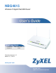 About This User's Guide About This User's Guide Intended Audience This manual is intended for people who want to configure the NBG4615 using the Web Configurator. Tips for Reading User’s Guides On-Screen When reading a ZyXEL User’s Guide On-Screen, keep the following in mind: • If you don’t already have the latest version of Adobe Reader, you can download it from http:// www.adobe.com. • Use the PDF’s bookmarks to quickly navigate to the areas that interest you.