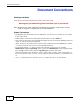 Document Conventions Document Conventions Warnings and Notes These are how warnings and notes are shown in this User’s Guide. Warnings tell you about things that could harm you or your device. Note: Notes tell you other important information (for example, other things you may need to configure or helpful tips) or recommendations. Syntax Conventions • The NBG4615 may be referred to as the “NBG4615”, the “device”, the “product” or the “system” in this User’s Guide.