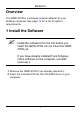 ENGLISH Overview The NWD-370N is a wireless network adapter for your desktop computer. See page 12 for a list of system requirements. 1 Install the Software " Install the software from the CD before you insert the NWD-370N. Do not insert the NWD370N yet. If you have already installed Funk Odyssey Client software on the computer, uninstall (remove) it. 1 Remove the NWD-370N if you already inserted it. 2 Insert the included CD into the CD-ROM drive on your computer.