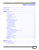 Table of Contents Chapter 20 Application Patrol .............................................................................................................................127 20.1 Application Patrol Overview ..........................................................................................................127 20.2 Application Patrol Commands Summary ......................................................................................128 20.2.1 Pre-defined Application Commands ....................