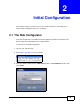 CHAPTER 2 Initial Configuration This chapter shows you how to set up your ZyXEL Device by connecting to its built-in Web Configurator with your computer. 2.1 The Web Configurator The web configurator is an HTML-based management interface that allows easy device setup and management via a web browser. To connect to the Web Configurator: 1 Launch your web browser. 2 Enter http://192.168.1.1 as the address. 3 Enter the default administrator Username (admin) and Password (1234), then click Login.
