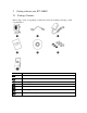 3 Installation 3.1 Connecting your IPC-3605N The picture below illustrates the basic connection of your IPC-3605N camera: The following table describes the numbered items: Number Contents Ethernet cable from PC to hub/router. Ethernet cable from router to camera. Use the bundled Ethernet cable to connect the LAN port of the IP camera to the LAN port of your hub/router. Wireless adapter (optional). If you’re using the USB Wi-Fi adapter, plug it into the USB port on your camera for wireless reception.